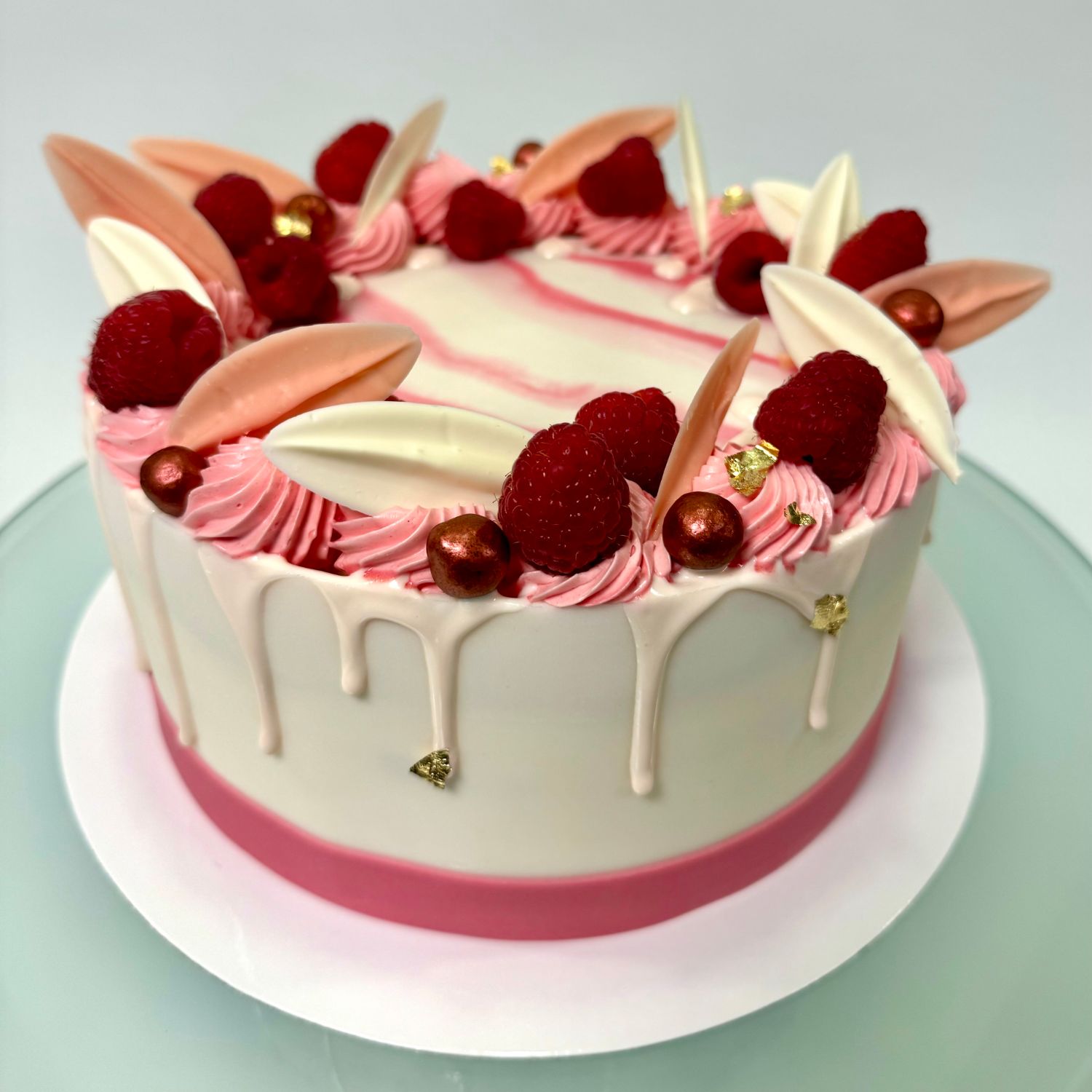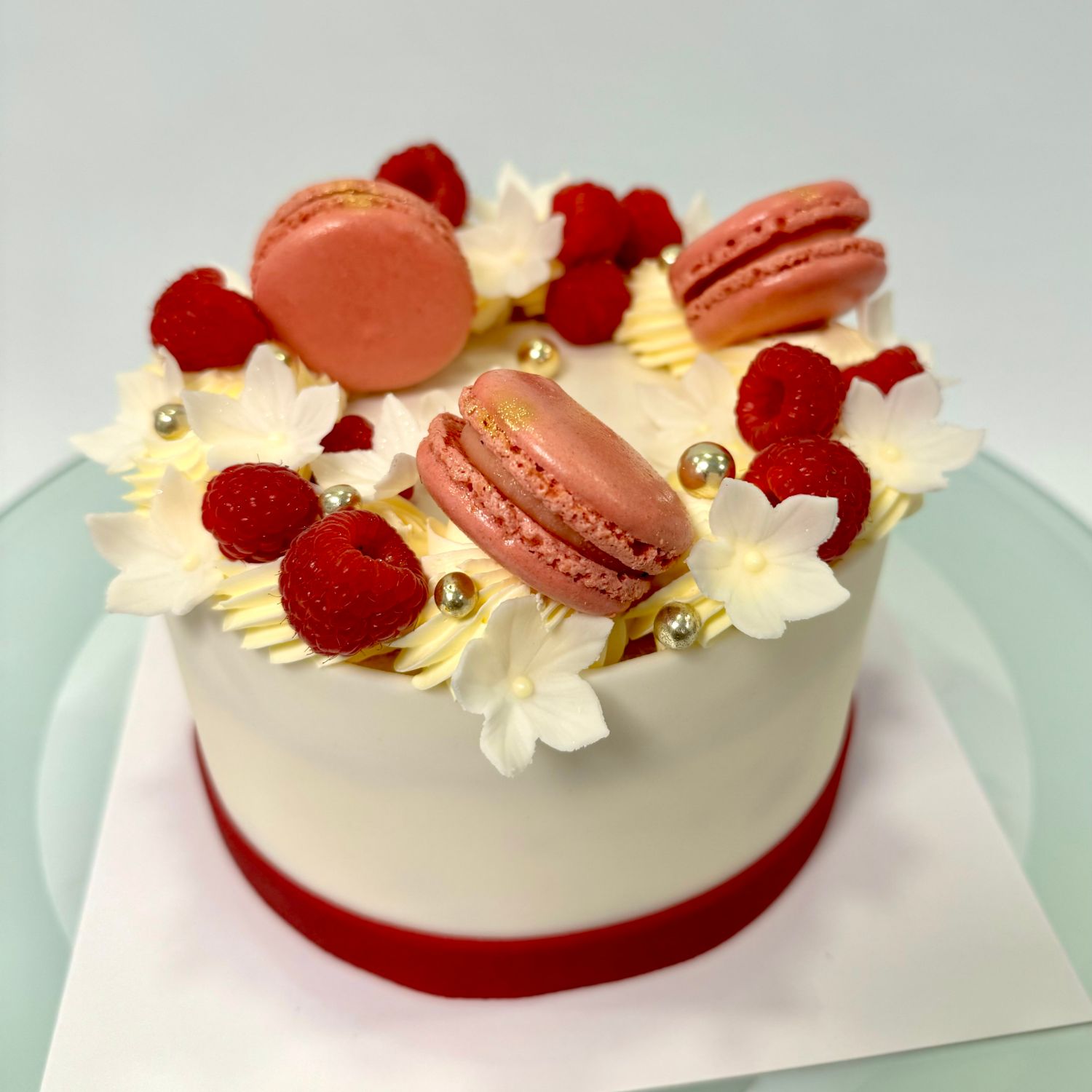 Iedere speciale taart heeft een vulling van een luchtige crème tussen drie laagjes biscuit, bitterkoekjes en verse frambozen. De biscuit is besprenkeld met vruchtensuikersiroop, die al jarenlang zeer populair is. Natuurlijk kunt u ook kiezen voor één van de andere smaken, zoals: